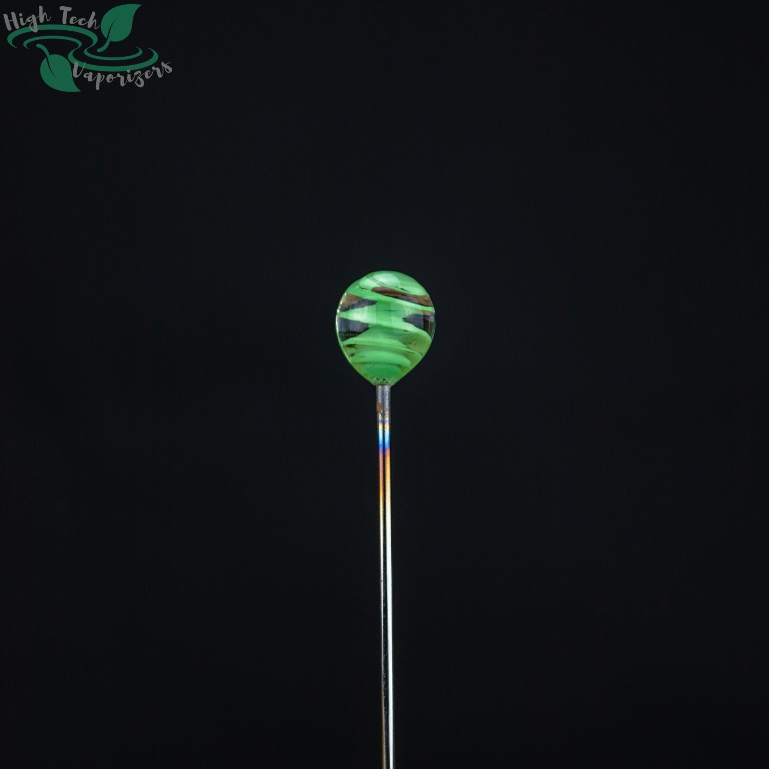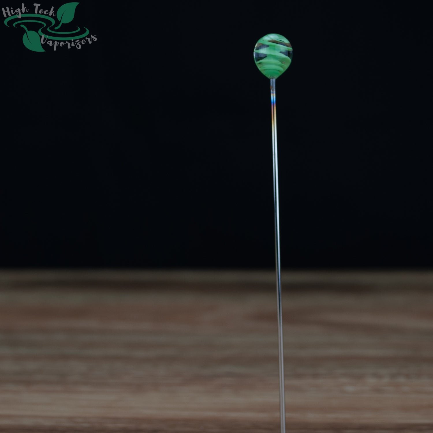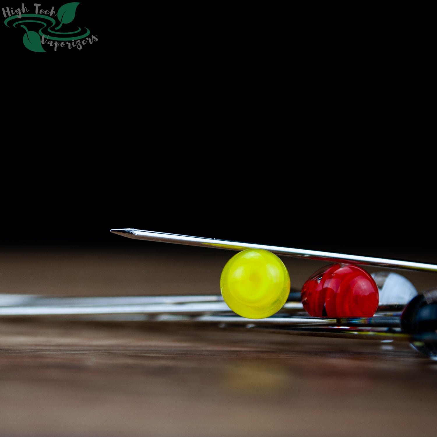 The marble picks have a sharp point on one end and a glass mushroom on the other. And come in blue and red.