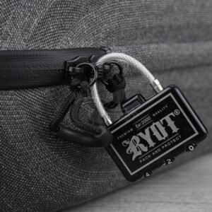 The Axe Pack comes standard with lockable zip pulls, Ryot 3 digit code lock, padded insert divider with built-in silicone mate, X-strap system for all your smaller items, small removable pouch and shoulder strap.