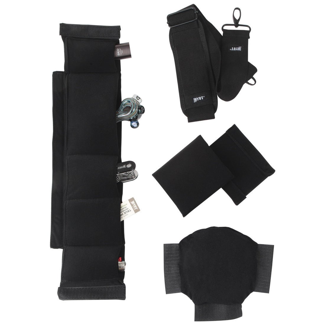 The all new and improved RYOT® Pro-Duffle’s padded wall design will fit your glass like a glove. Secure and arrange your accessories using the removable interchangeable Velcro Padding. The Durable modest exterior features a long pocket, and weather proof cotton canvas fabric. Patents Pending.