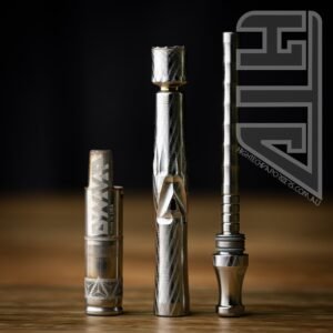 Dynavap’s latest creation and their answer to ball powered devices. The UniDyn comes standard with their BallR cap which is loaded with stainless steel balls that feed heat in from the top. This new design from dynavap produces a lot more convection vs conduction compared to the traditional dynavap cap. That BallR cap is not the only interested feature of the UniDyn. This design also has the tip and stem as one piece. With a removable and adjustable mouthpiece and condenser assembly. You can easily adjust the length of the condenser by sliding it in and out into various different grooves. This gives you consistent adjustability when it comes to air/vapour mix.